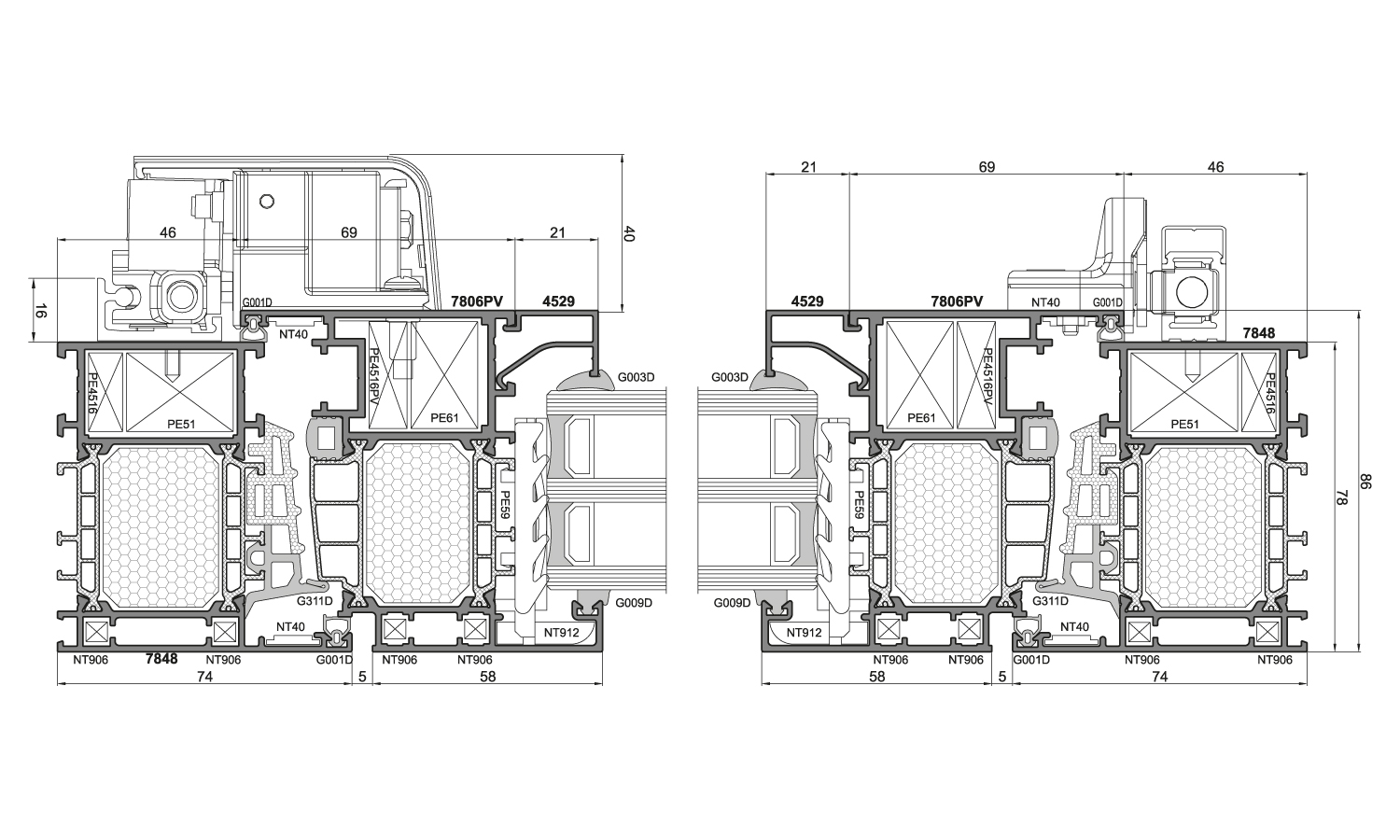 - Das System verfügt je nach verwendeten Dämmeinlagen über verschiedene Varianten: PE78N+, PE78NHI, PE78NHI+
