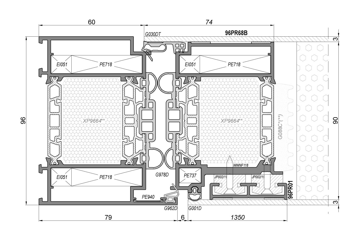 Ein symmetrisches System mit sehr hoher Wärmedämmung zur Herstellung von Türkonstruktionen.